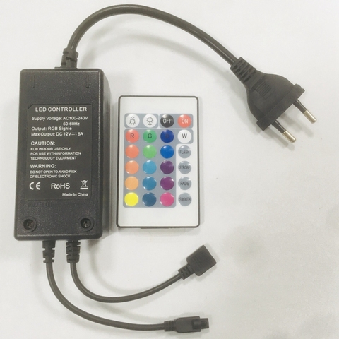 Инфракрасный пульт дистанционного управления, встроенный источник питания, 24 ключа, 12 В, 6 А, Светодиодная лента, RGB-контроллер